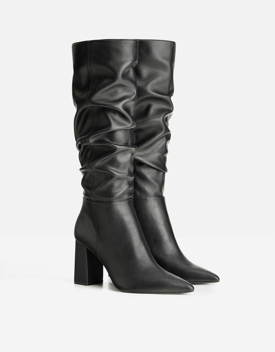 High-heeled boots with a wide upper